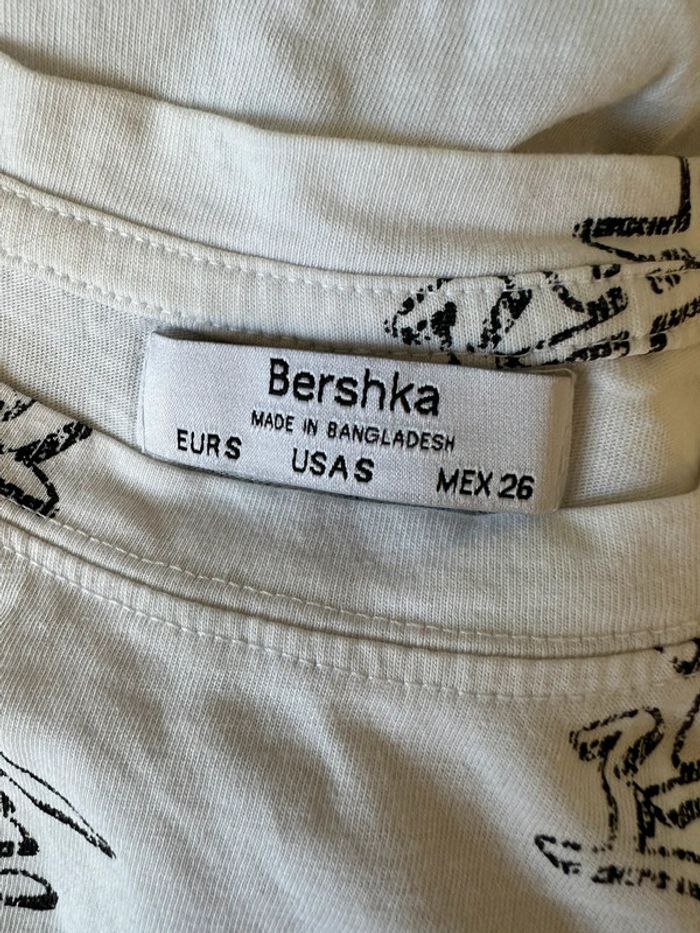 T-shirt blanc et noir imprimés chinois Bershka T36 S - photo numéro 4