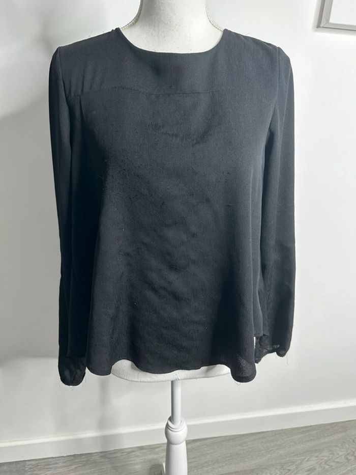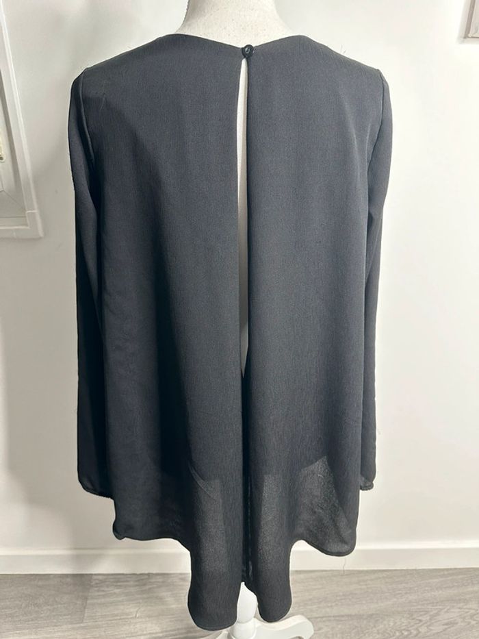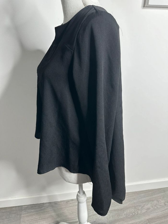 Blouse asymétrique - Excellent état - Couleur noire - Taille 36/38 équivalent S/M - Ouverte dans le dos - Coupe asymétrique - Manches longues - En voile fluide - 100% Polyester