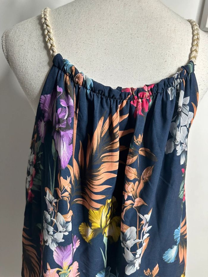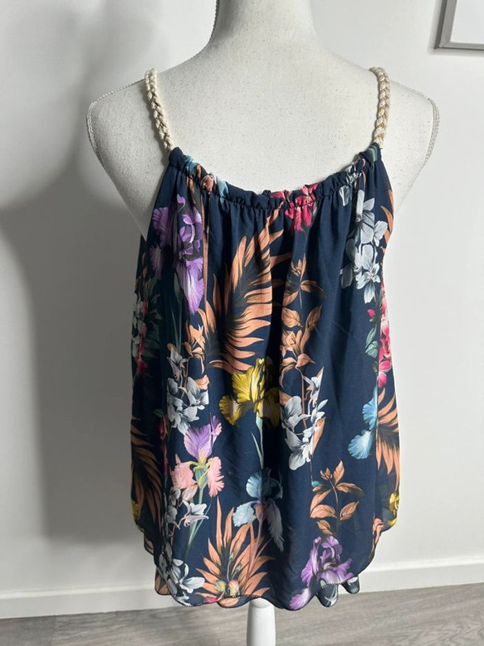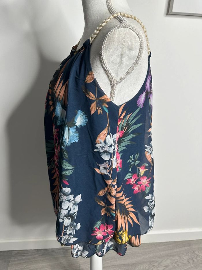 Débardeur fluide tropical bleu marine et multicolore T38 M - photo numéro 5