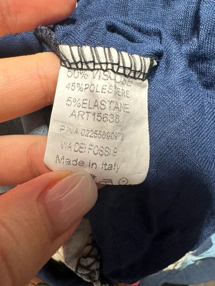 Débardeur fluide - Excellent état - Taille 38 équivalent M - Imprimé tropical - Bleu marine et multicolore - Bretelles tressées - Fabrication italienne 🇮🇹 - Viscose, polyester, élastane