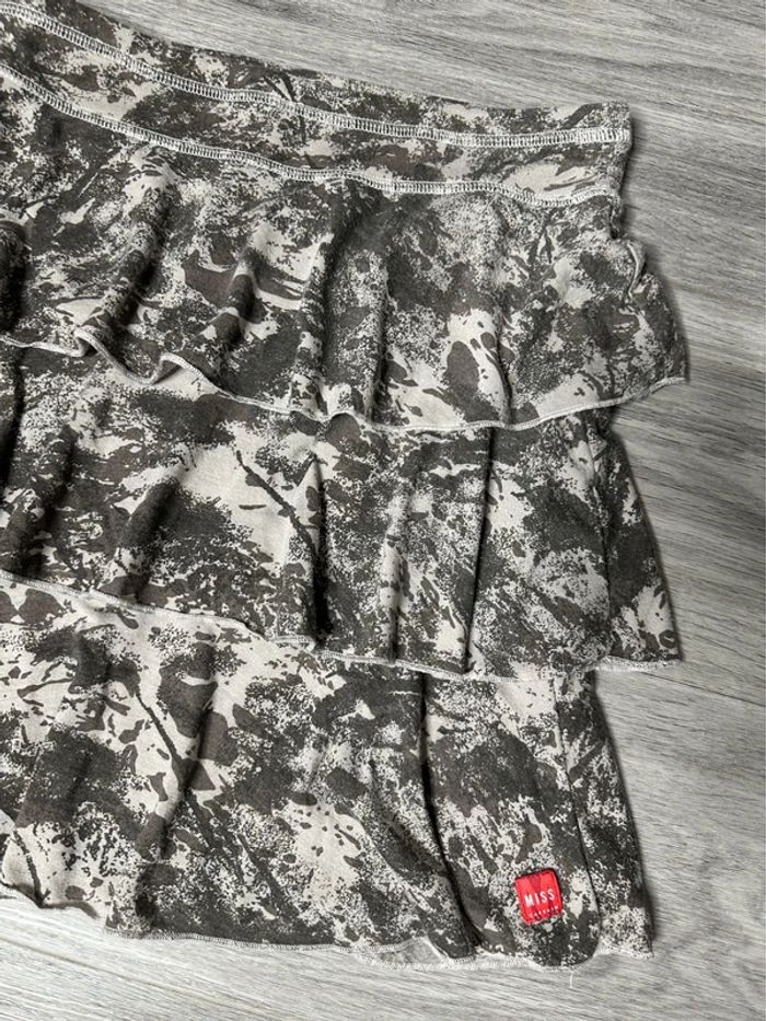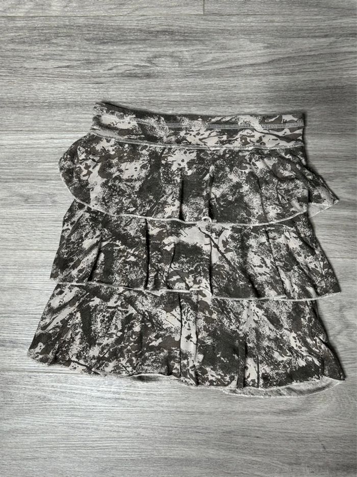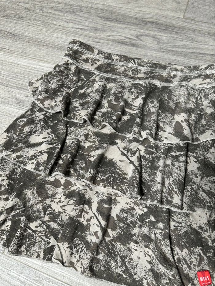 Jupe militaire camouflage - Excellent état - Captain Tortue - Miss Captain - Taille 36 équivalent S - Plusieurs volants - Tissus stretch - Kaki grise - Polyester et viscose Dimensions: - 34 à 38cm à la taille - 44cm de long