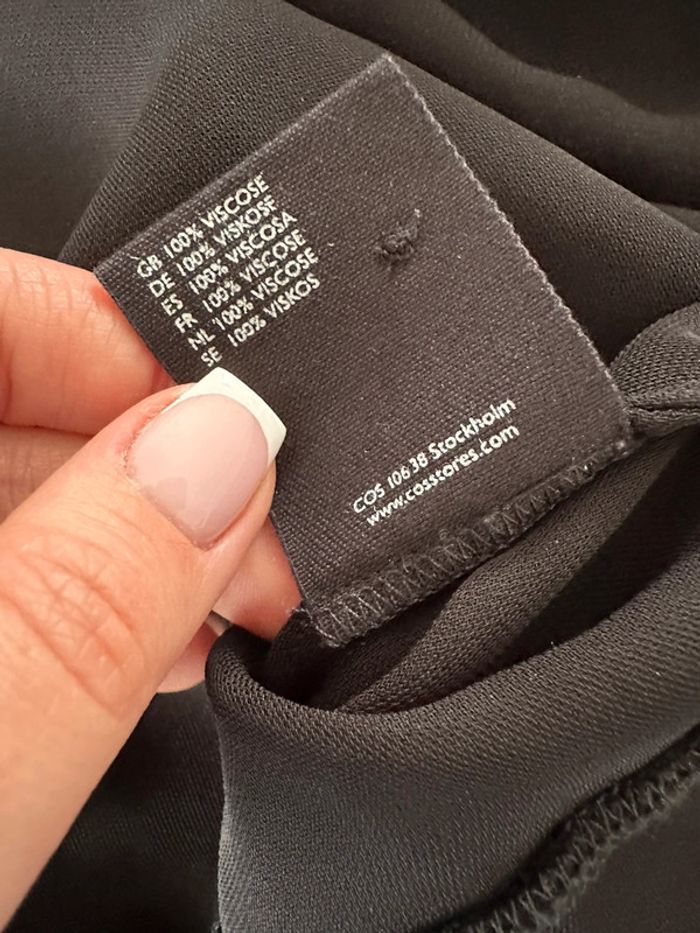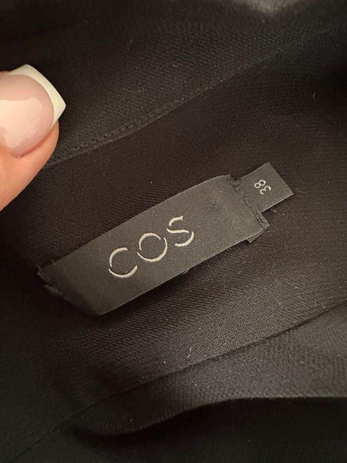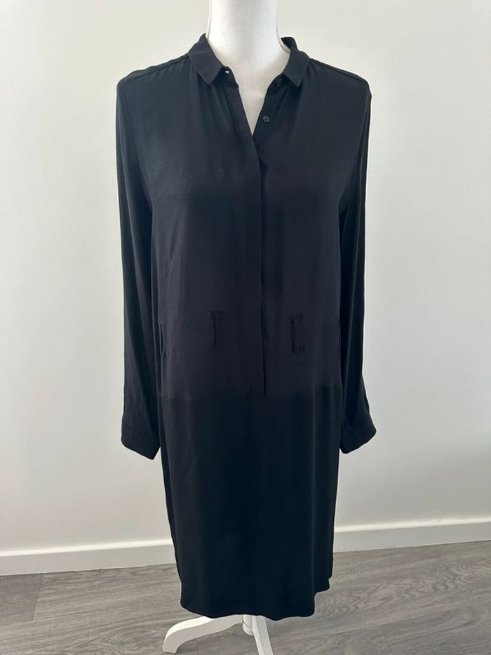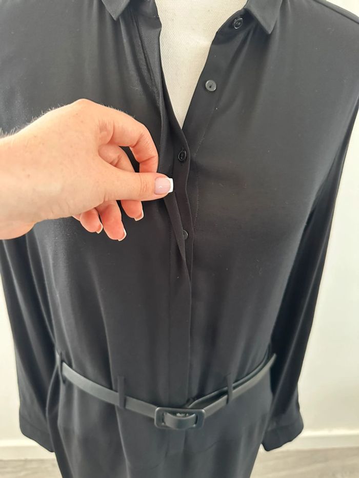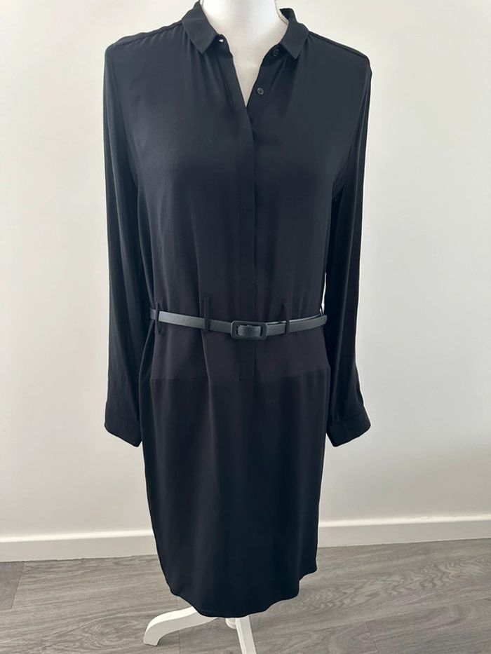 Robe longue - Excellent état - Taille 38 équivalent M - Marque COS - Couleur noire - Coupe droite - Se ferme avec des boutons - Ceinture à la taille - 100% Viscose