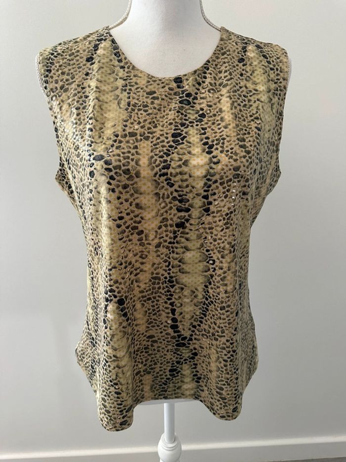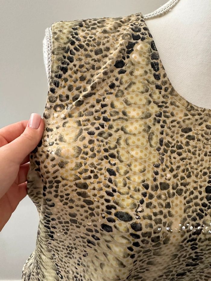 Débardeur python serpent - Excellent état - Taille 40 équivalent L - Beige et noir - Pastilles argentés pailletés dans le tissus - Polyester et elastane - Tissus stretch - Fosby Vintage, années 80-90’
