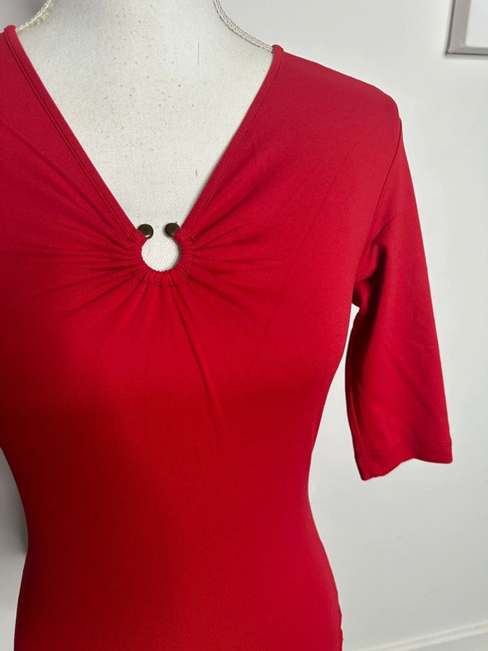 Crop top - Excellent état - Taille 38 équivalent M - Couleur rouge bordeaux - Manches courtes - Bijoux au niveau du décolleté - Vintage, années 90’ - Coupe moulante - Tissus stretch - Plus d’étiquette de taille ni de matière