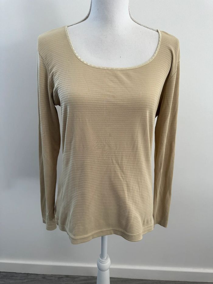 Blouse à manches longues beige crème à rayures UJA T2 38/40 M/L - photo numéro 3