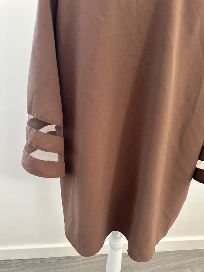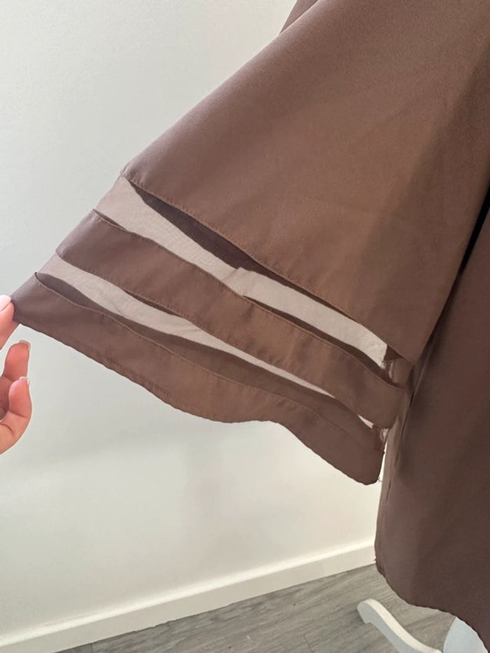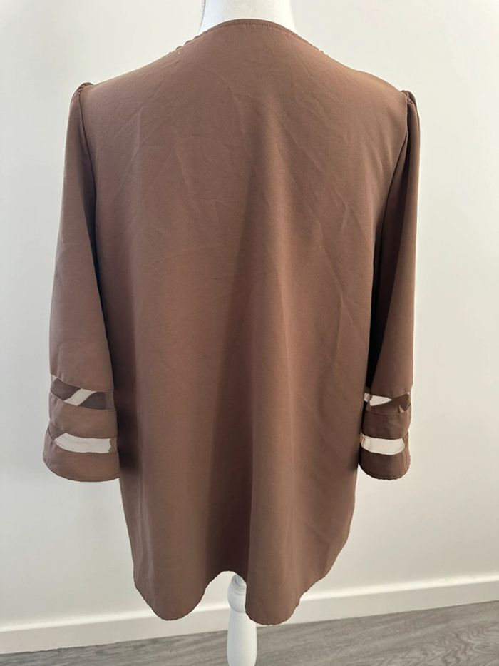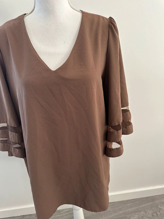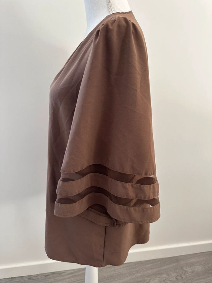 Blouse oversize à manches courtes - Excellent état - Taille 42 équivalent XL - Marron chocolat - Col en V - Manches courtes - Transparente au niveau des manches - Polyester et Spandex - Tissus fluide