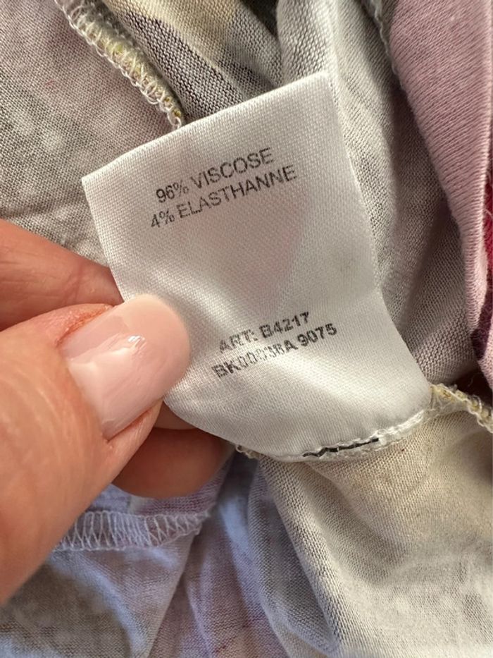 Blouse multicolore - Excellent état - Taille 5 équivalent 5XL 50 - Multicolore - Ajustée sous la poitrine - Marque Christine Laure - Manches courtes - Viscose et elastane