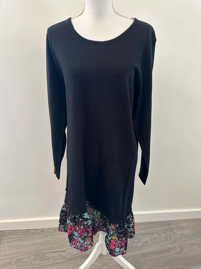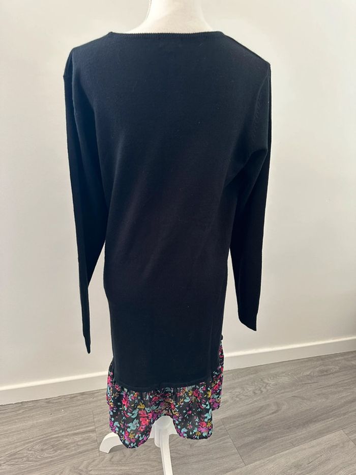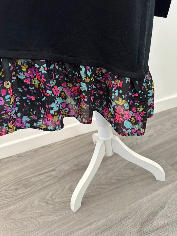 Robe pull oversize noire et multicolore à fleurs Bleu Bonheur T42/44 XL/XXL