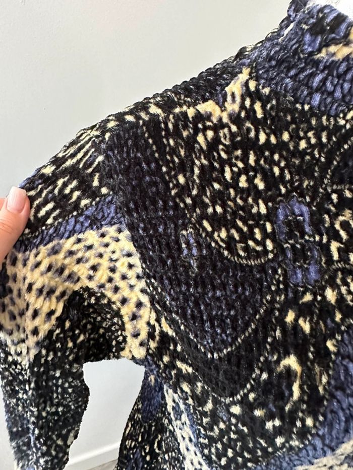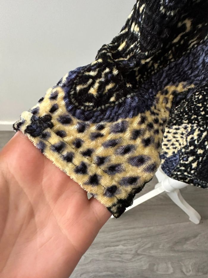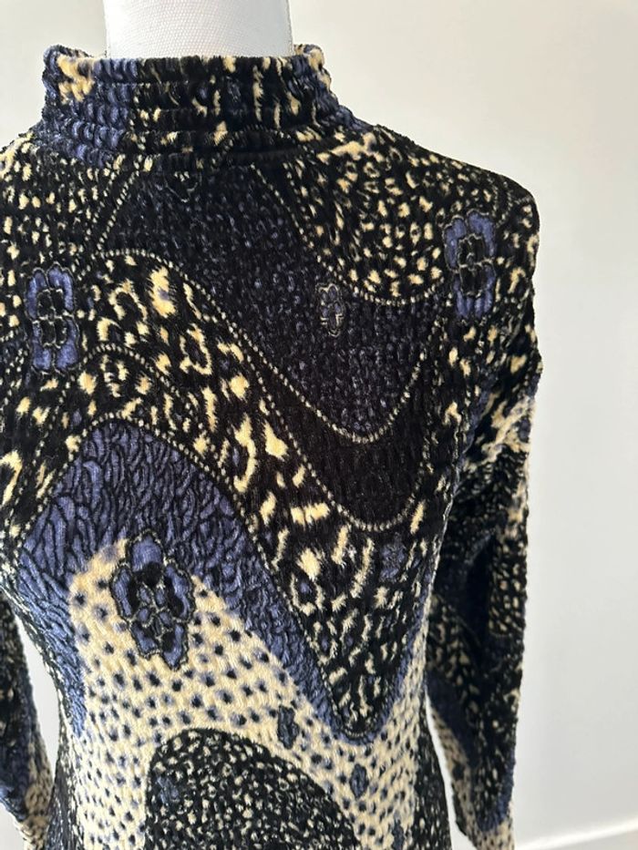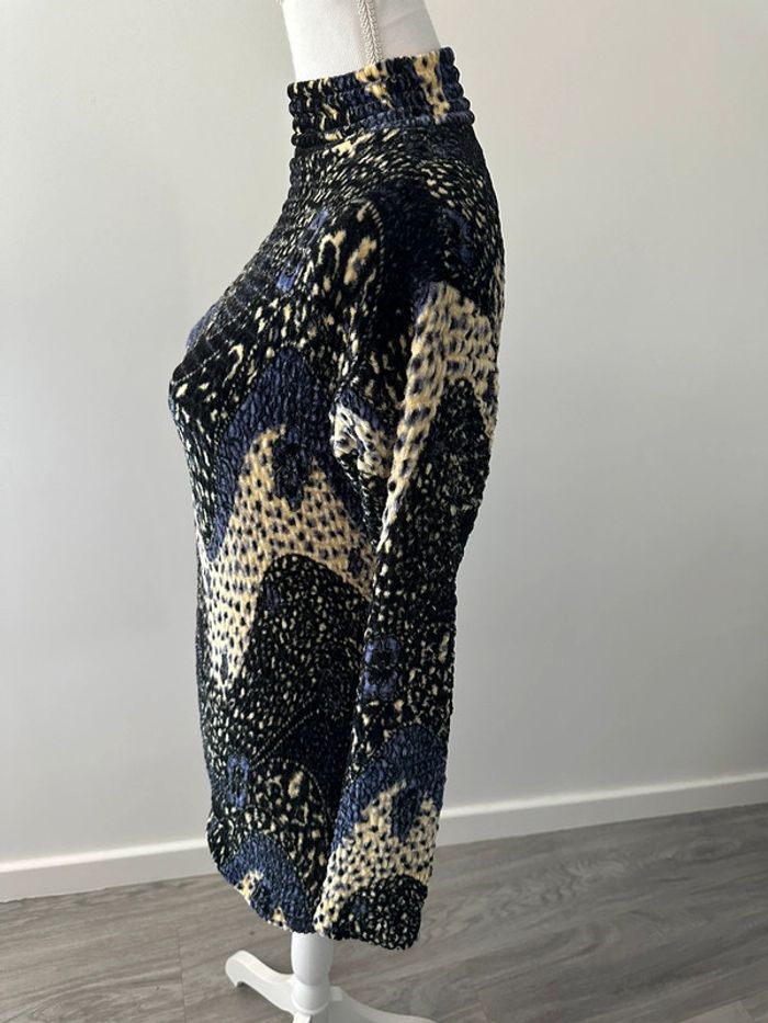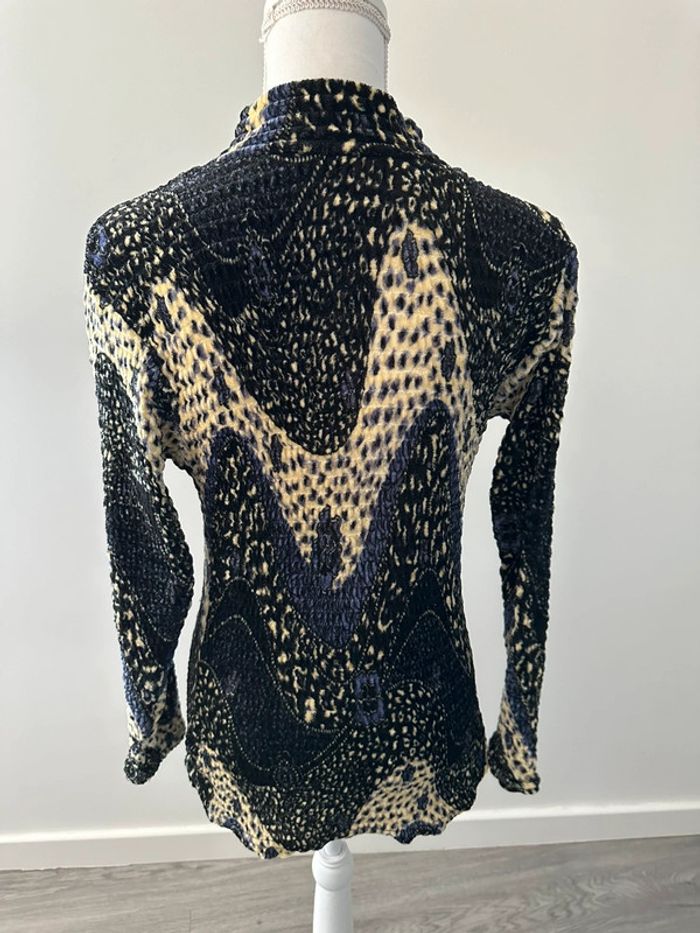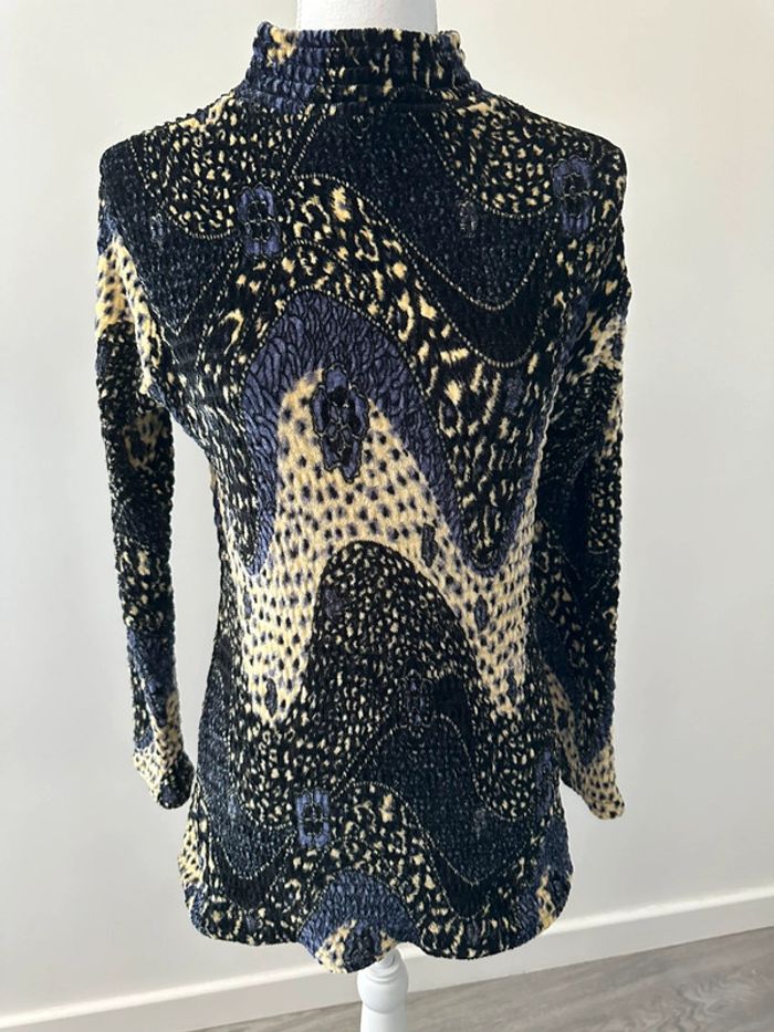 Pull bariolé léopard - Excellent état - Taille unique (ok du 36 au 42) - Noir beige et bleu marine - Ultra doux et stretch - Imprimés bariolés et léopards - 100% Viscose - Vintage années 90’ - Col haut