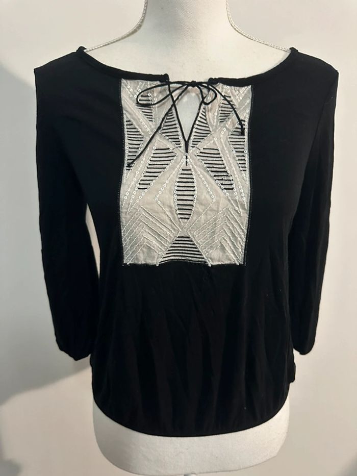Blouse brodée sequins noire et blanche Agathe Velmont T1 36 S - photo numéro 1