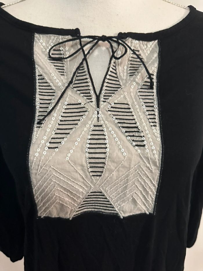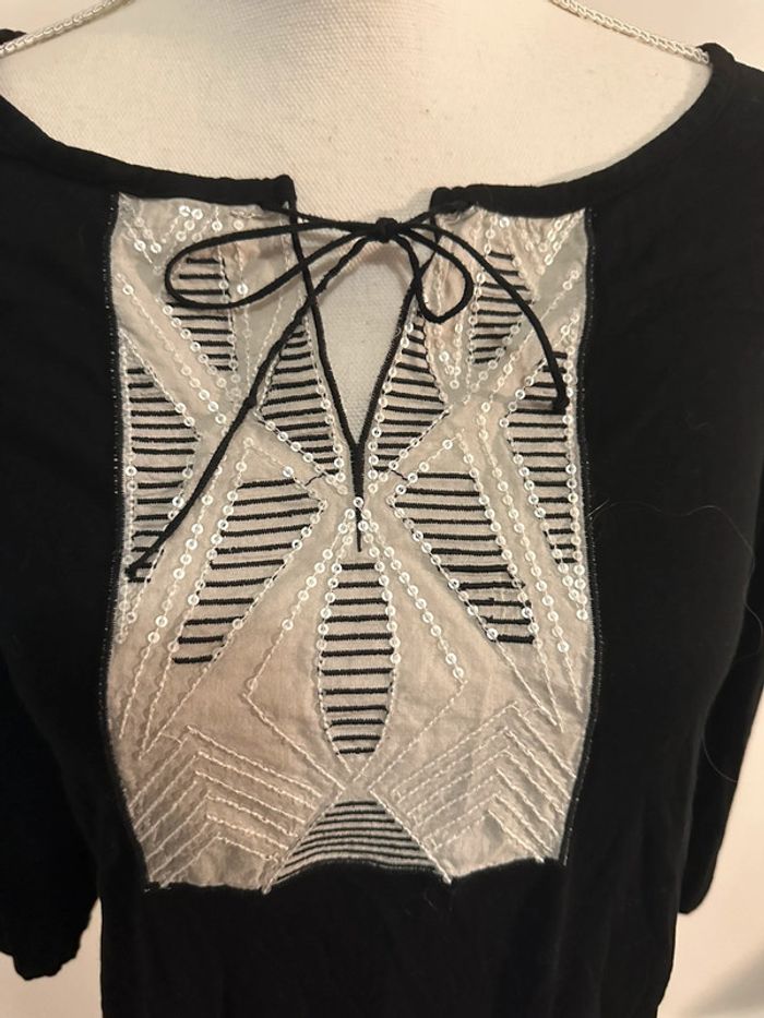 Blouse brodée sequins noire et blanche Agathe Velmont T1 36 S - photo numéro 3