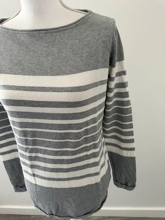 Pull marinière - Excellent état - Taille 38/40 équivalent M/L - Gris et blanc - À rayures - Manches longues - 100% coton - Esmara