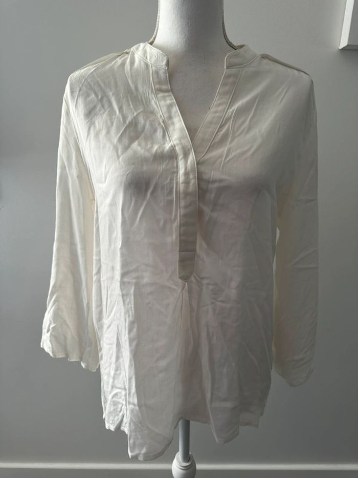 Blouse blanche - Excellent état - Taille 1 36 équivalent S - Goa Collection - Couleur blanche - Manches 3/4 - Rayon et Viscose - Tissus fluide
