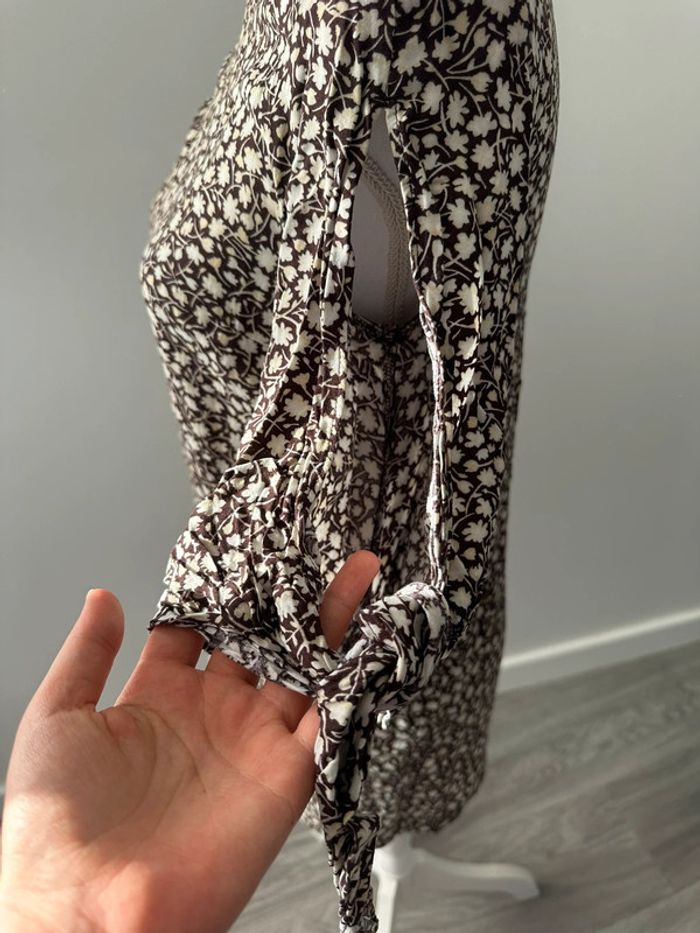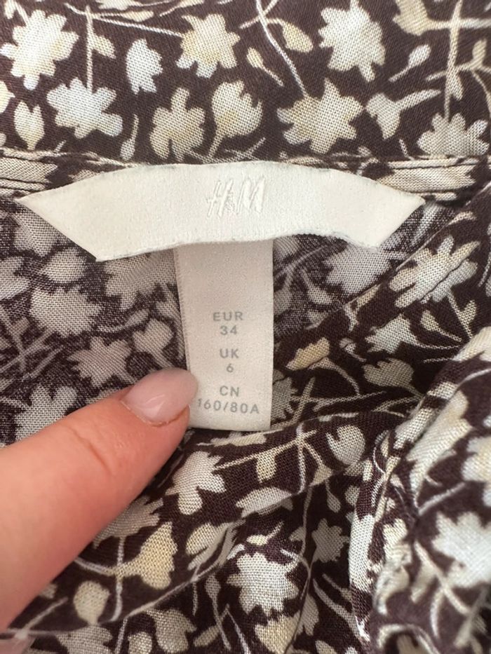Tunique à fleurs marron et beige crème H&M T34 XS - photo numéro 6