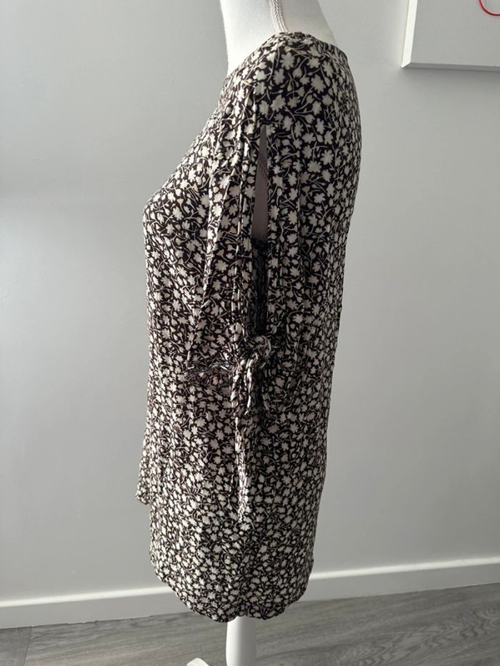 Tunique à fleurs marron et beige crème H&M T34 XS - photo numéro 5