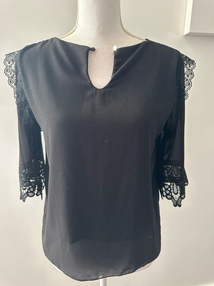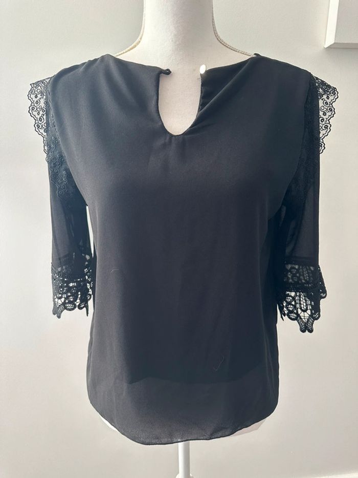 Blouse en dentelle gothique noire Vintage T36 S - photo numéro 1