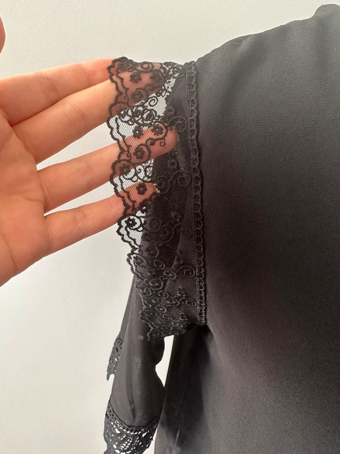 Blouse en dentelle gothique noire Vintage T36 S - photo numéro 2