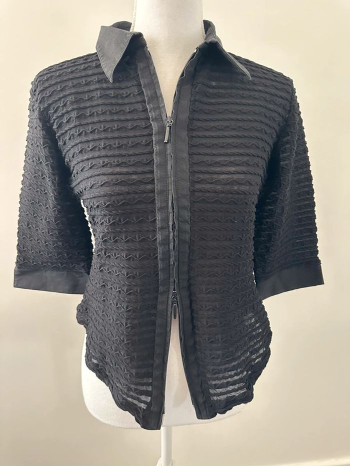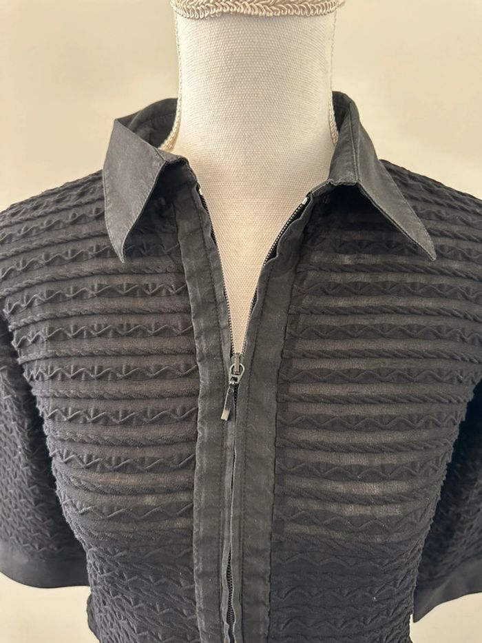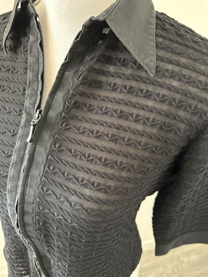 Blouse côtelée - Excellent état - Taille 38 équivalent M - Manches courtes larges - Couleur noire - Tissus texturé côtelé - Zip double sens - Vintage années 90’ - Rayure Paris - Fabrication française 🇫🇷 - Plus d’étiquette de matière ni de taille