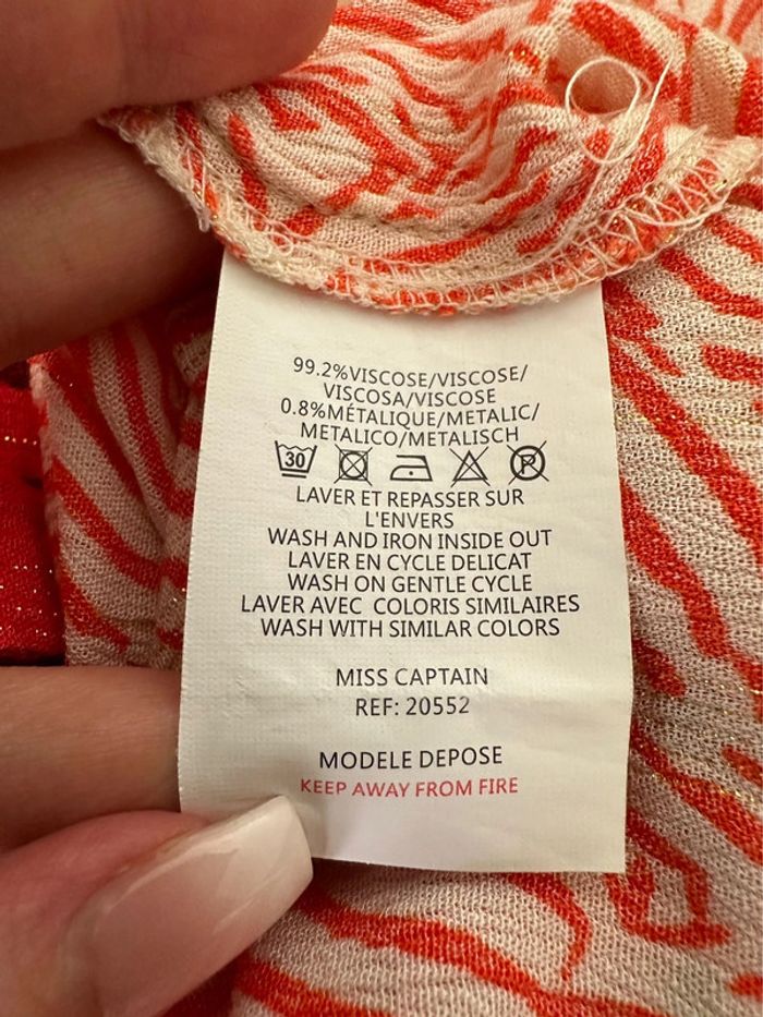 Blouse bariolée orange blanche et dorée Miss Captain Tortue T38 M