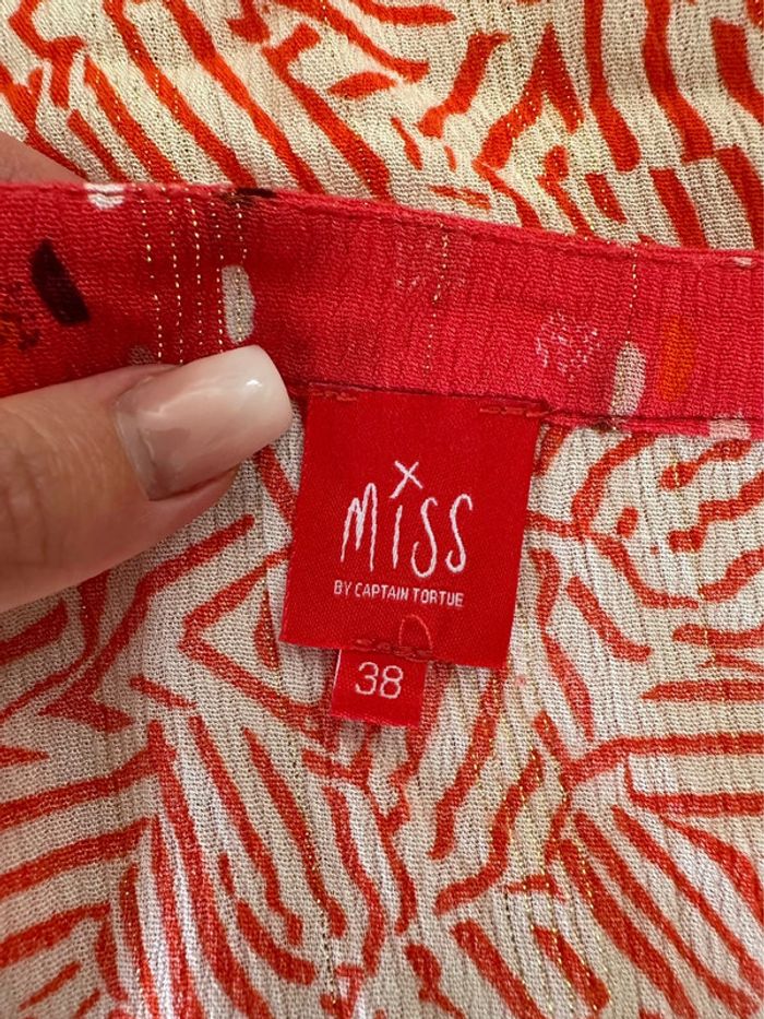 Blouse bariolée orange blanche et dorée Miss Captain Tortue T38 M - photo numéro 1