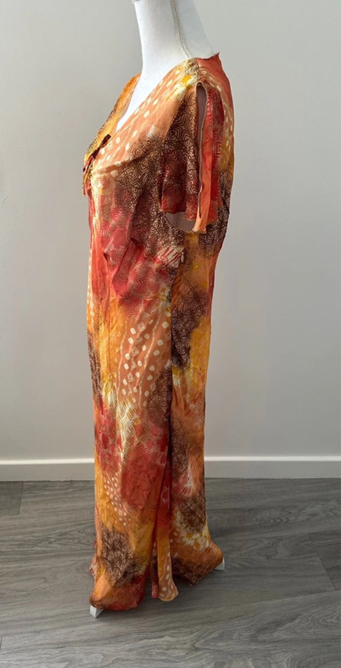 Robe longue bariolée orange et marron Daxon Vintage T50 5XL - photo numéro 4