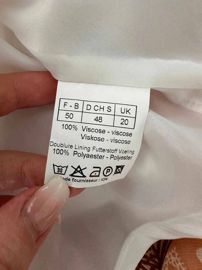 Robe longue - Excellent état - Taille 50 équivalent 5XL - Orange et marron - Marque Daxon - Doublure intérieure - Petites manches - Col en V - Viscose et polyester - Vintage, années 90’