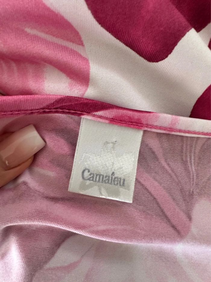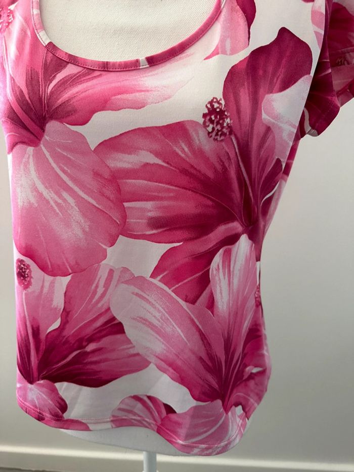 T-shirt à fleurs blanc et rose Camaïeu Vintage T4 42 XL - photo numéro 8