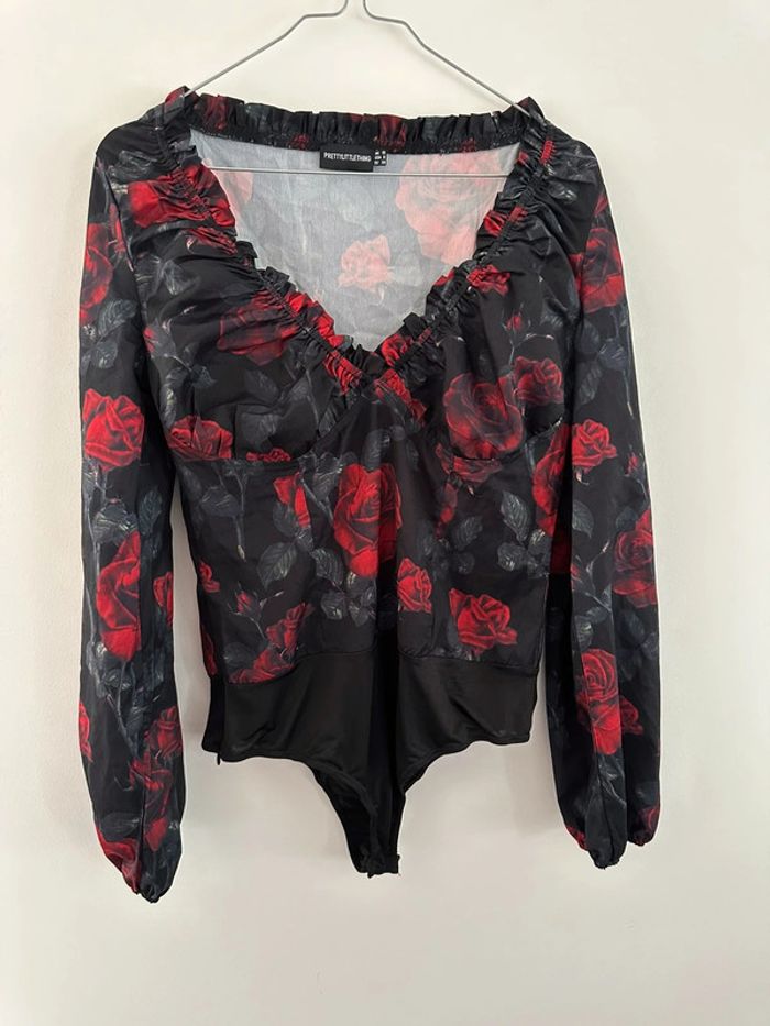 Body à fleurs noir et rouge Pretty Little Thing T38 M - photo numéro 2