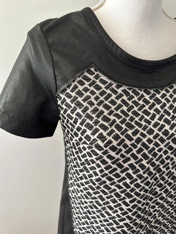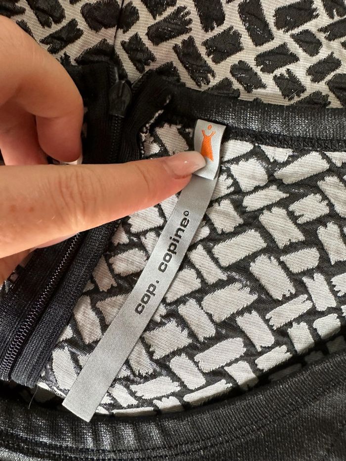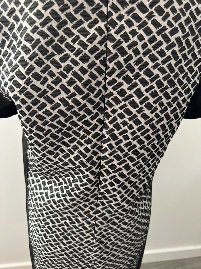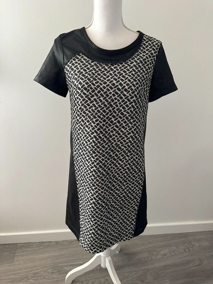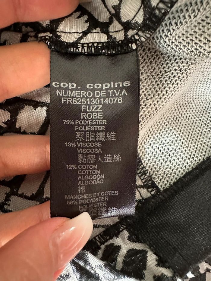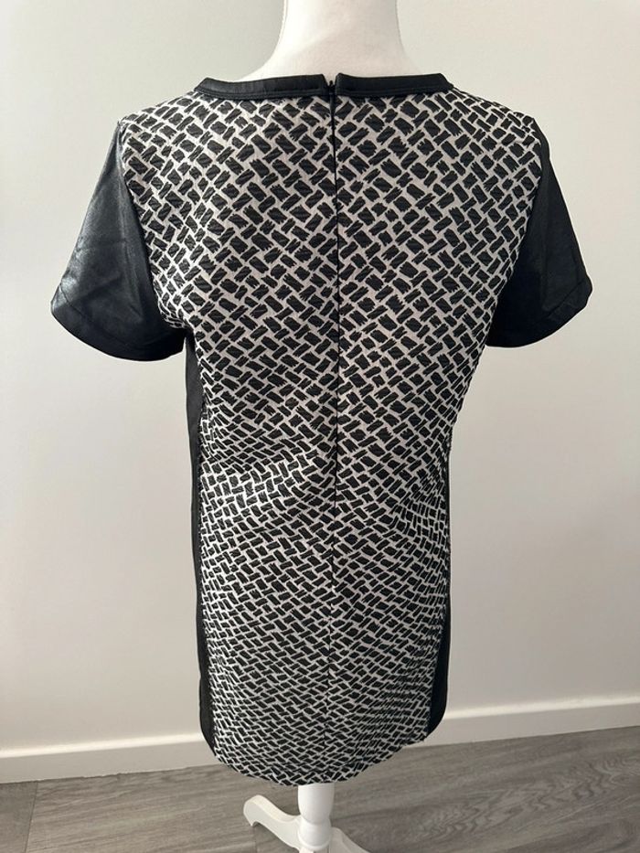 Robe bariolée noire et blanche - Excellent état - Taille 38 équivalent M - Cop Copine - Noire et blanche - Manches courtes - Zip dans le dos - Polyester, viscose, coton - Modele Fuzz