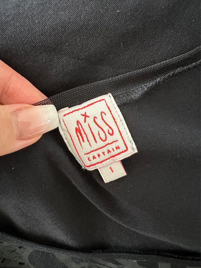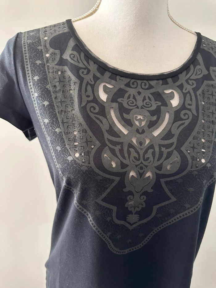 T-shirt ajouré effet broderie noir et gris Miss Captain T1 36/38 S/M - photo numéro 1