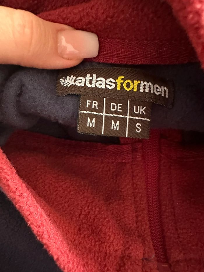 Polaire homme - Excellent état - Taille M - Atlas for Men - Bleu marine et rouge - Zip au niveau du col - Broderie outdoor - 100% Polyester