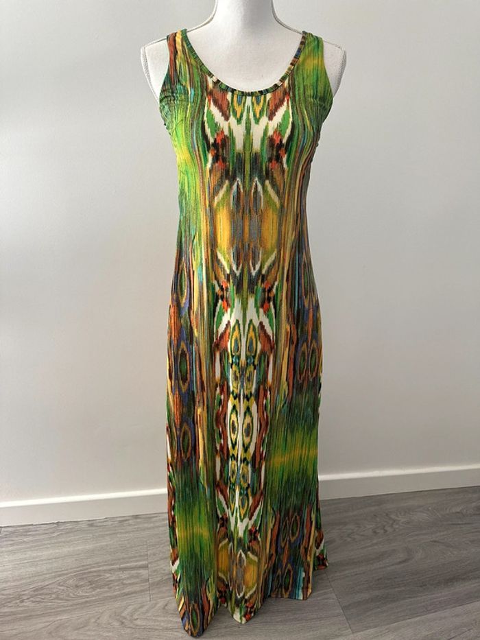 Robe longue psychédélique verte et jaune T38 M - photo numéro 1