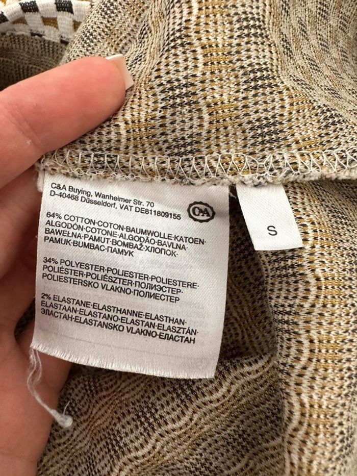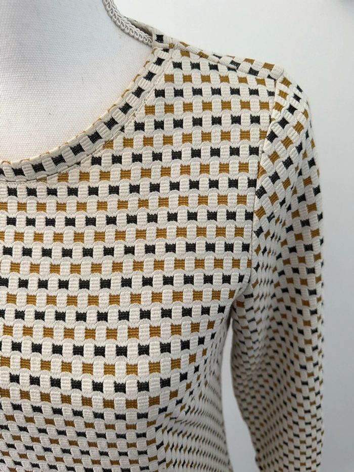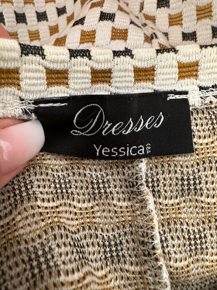 Robe à carreaux - Excellent état - Taille 36 équivalent S - Manches 3/4 - Marque Yessica - Tissus à petits carreaux - Blanc crème, moutarde et grise - Coton, polyester et elastane