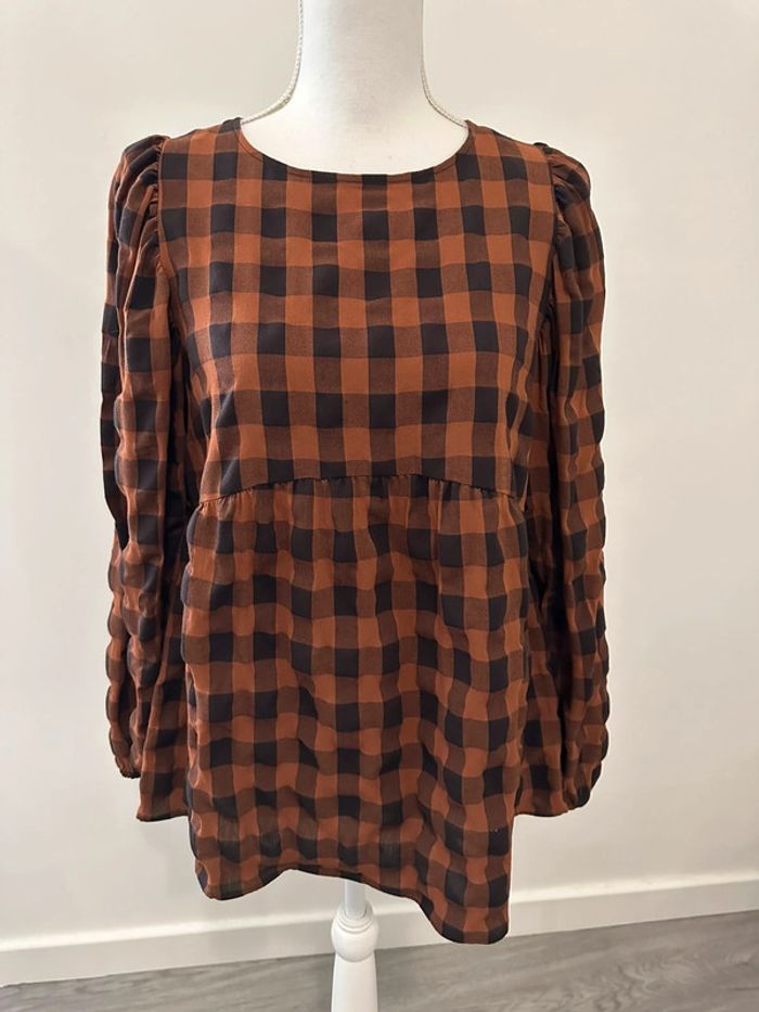 Blouse à carreaux marron et noire Primark T38 M
