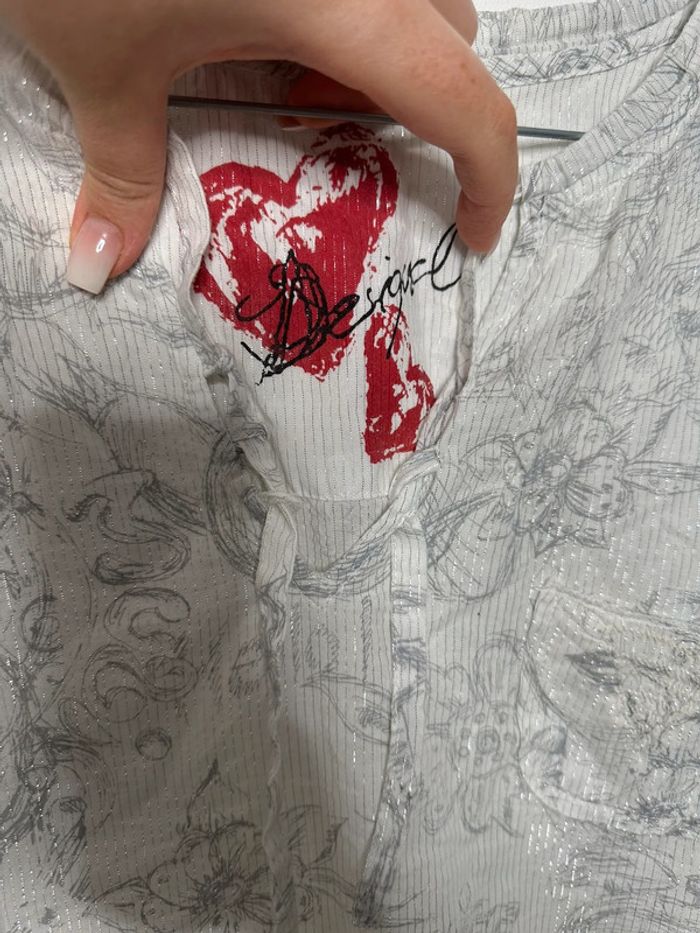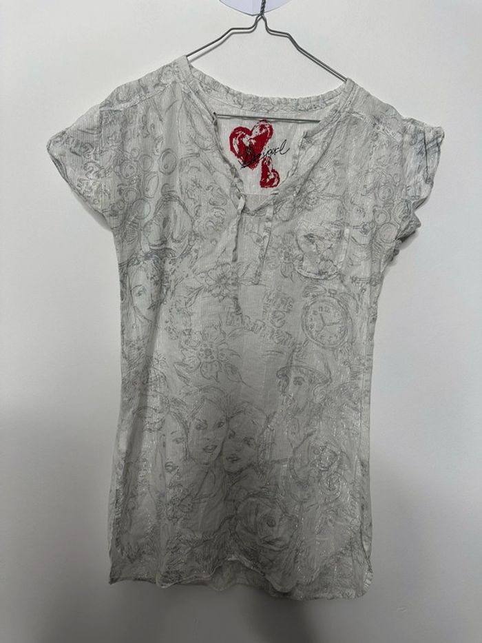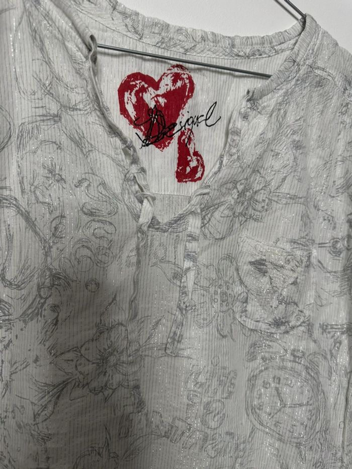 Blouse blanche et argentée Desigual T36 S - photo numéro 1