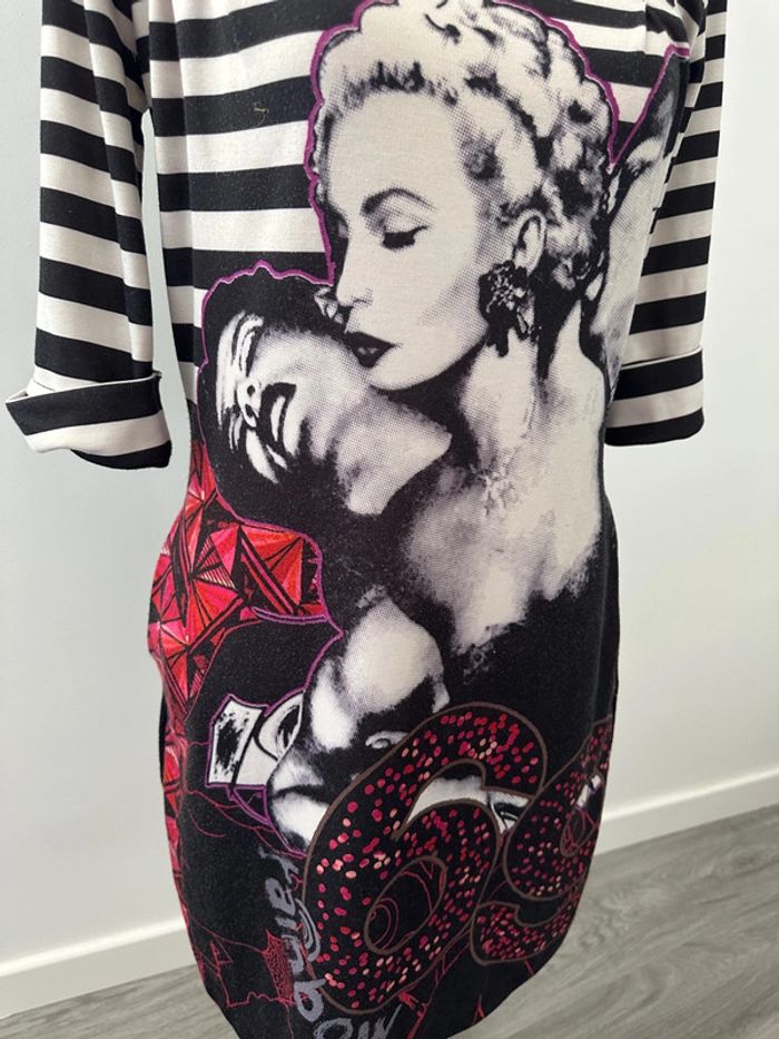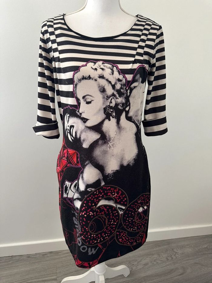 Robe marinière noire blanche et rouge Desigual T38 M - photo numéro 8