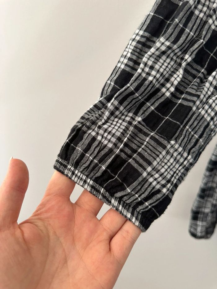 Robe à carreaux - Excellent état - Taille 36 équivalent S - Noire et blanche - Coupe babydoll - Tissus à carreaux - Col drapé - 100% coton - Plus d’étiquette de taille