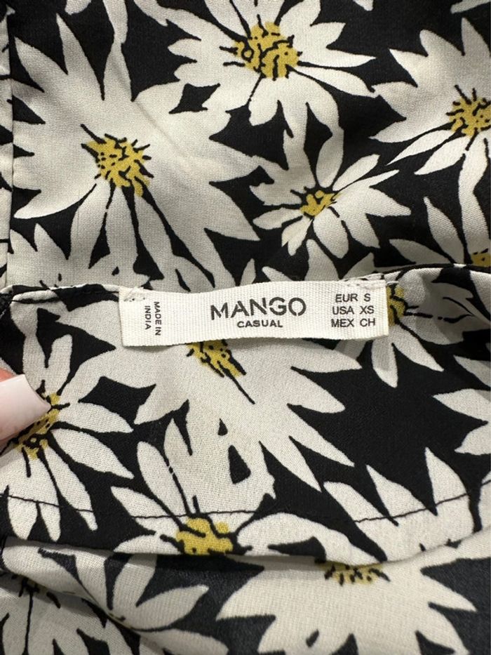 Combishort - Excellent état - Marque Mango - Taille 36 équivalent S - Noire blanche et jaune - Imprimés marguerites fleurs - Manches ajourées - 100% Polyester