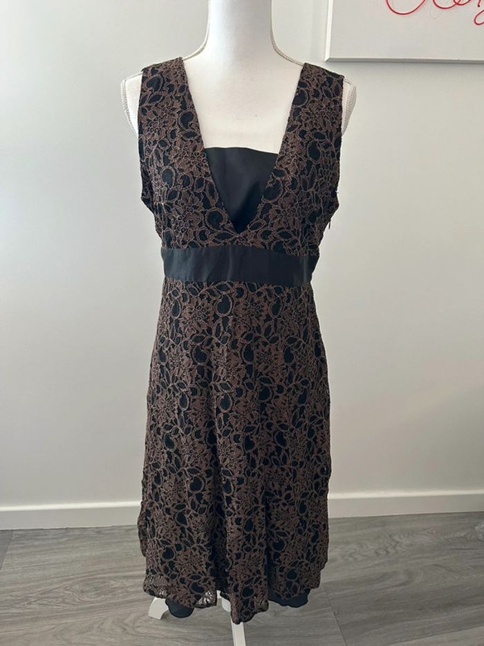 Robe noire et marron broderies dentelles Burton T38 M - photo numéro 3
