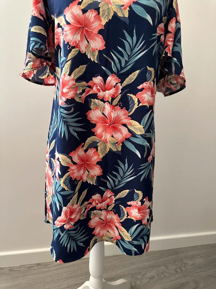 Robe fleurs tropicales bleue marine et rose T38 M - photo numéro 5