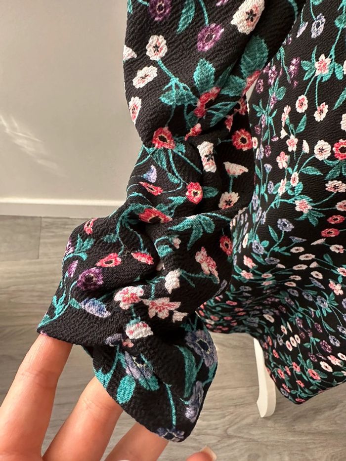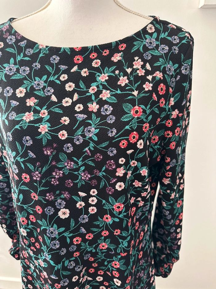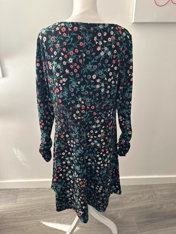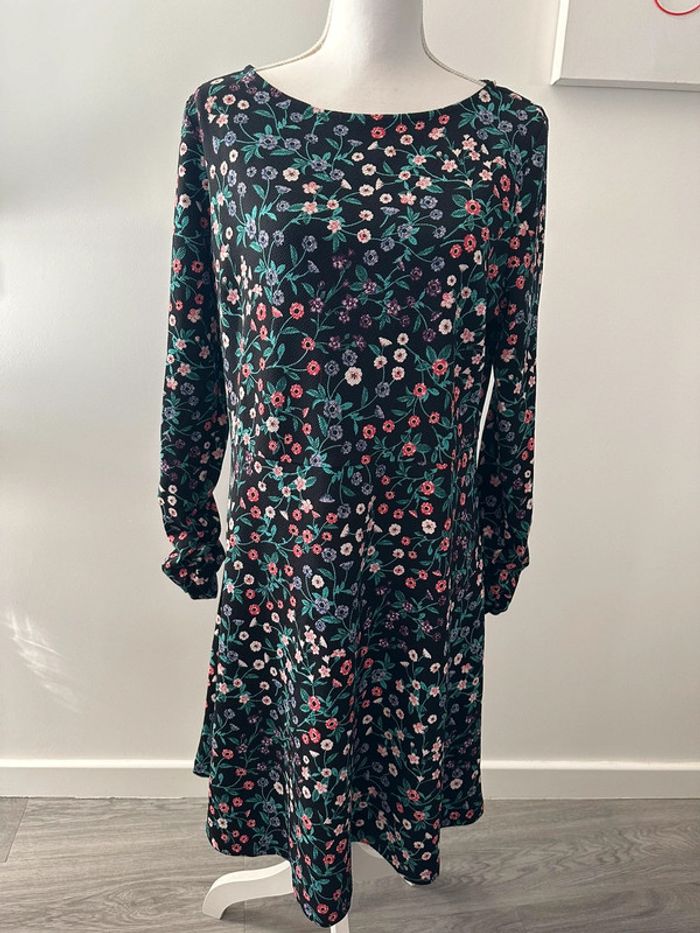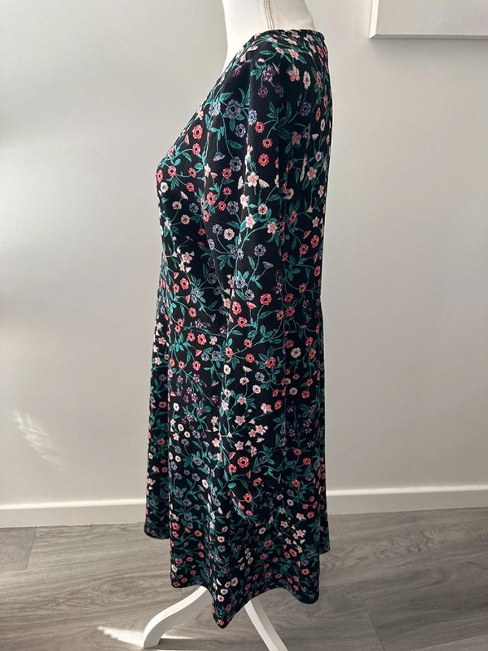 Robe à fleurs - Excellent état - Noire et multicolore - Fit & Flare - Marque Yessica - Manches longues - Taille 40 équivalent L - Imprimés fleurs - Plus d’étiquette de taille et de matière
