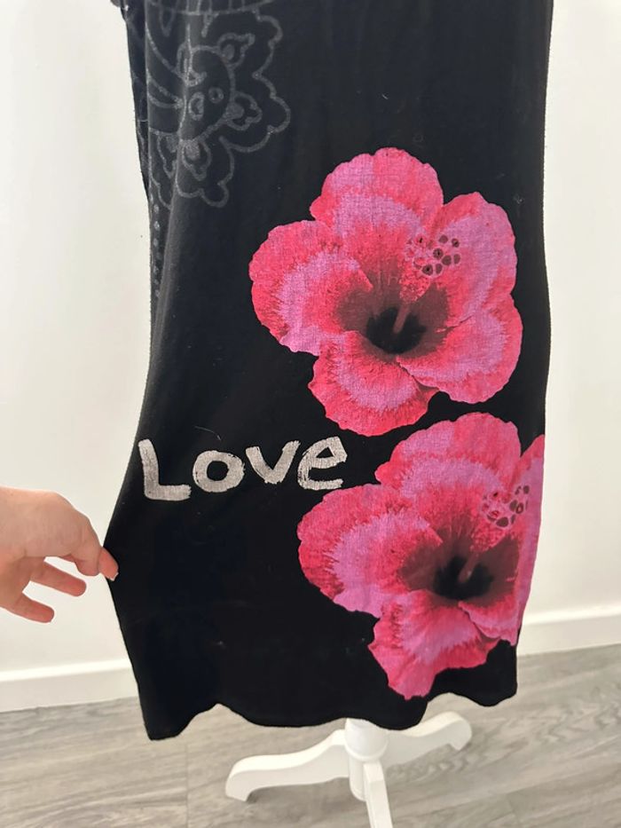 Robe noire et rose fleurs hibiscus Desigual T38 M - photo numéro 7