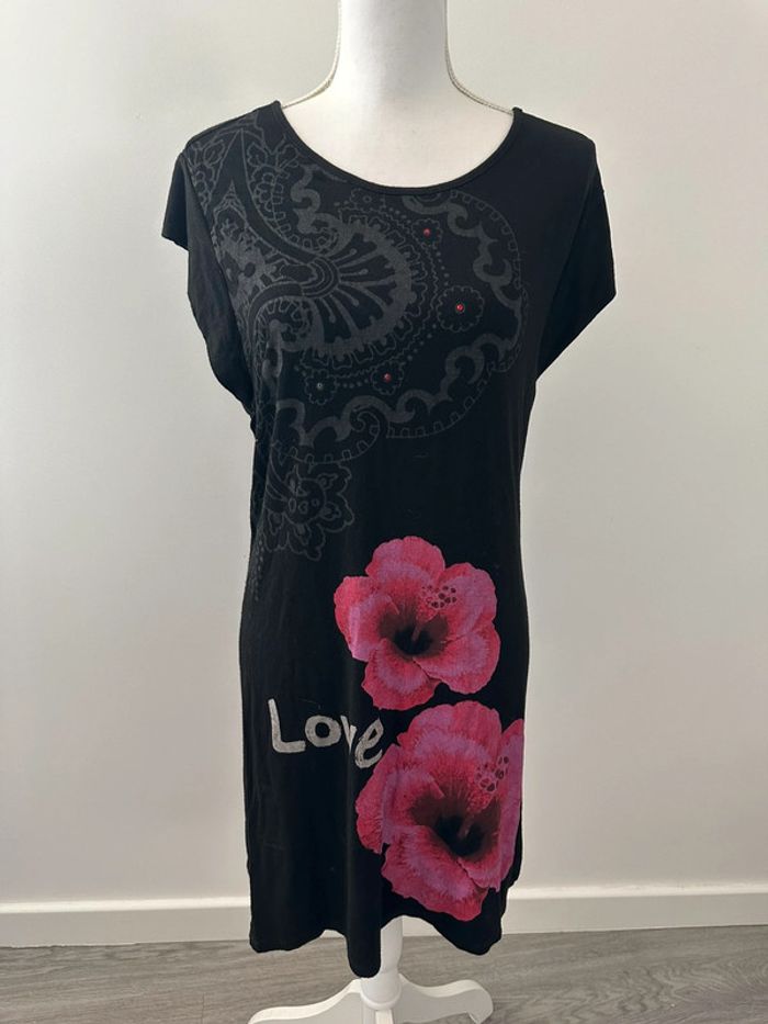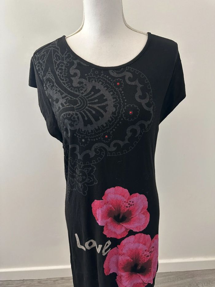 Robe noire et rose fleurs hibiscus Desigual T38 M - photo numéro 1