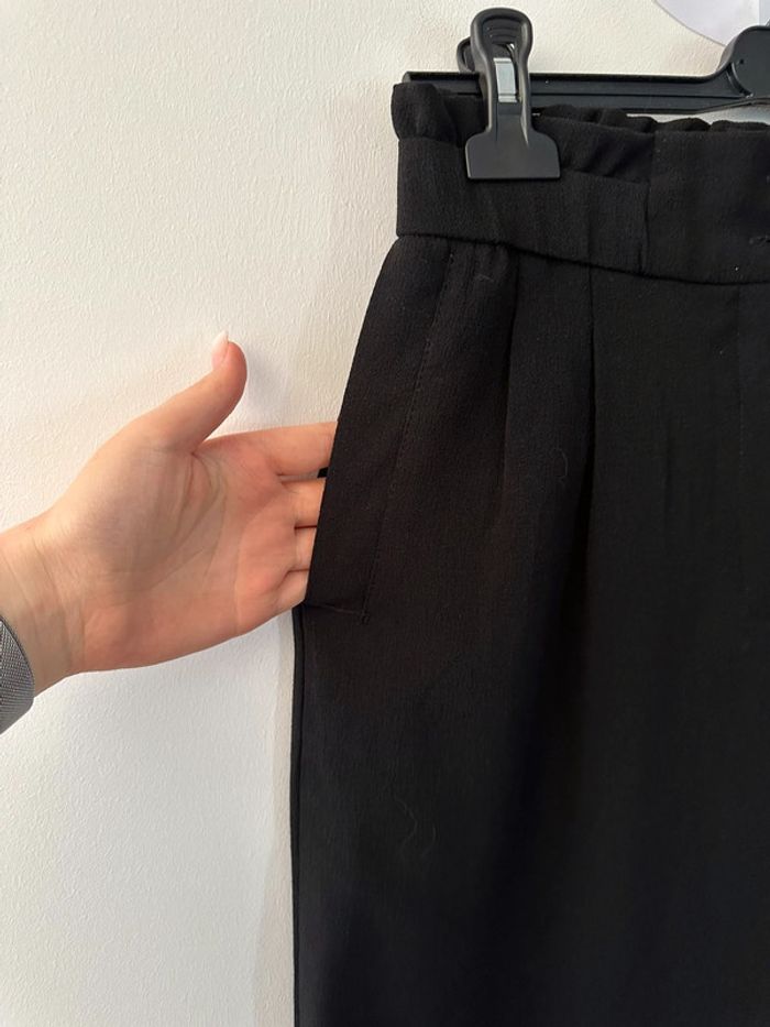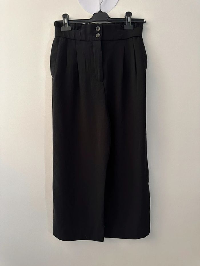 Pantalon à jambes larges - Excellent état - Taille 38 équivalent M - Marque H&M - Elastique à la taille - Jambes larges - Couleur noir - Tissus fluide - Deux poches - Polyester et elastane Dimensions: - 36 à 40cm à la taille - 93cm de long
