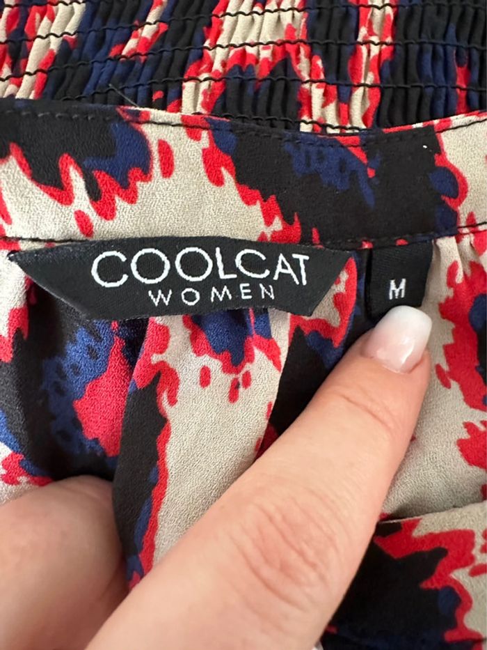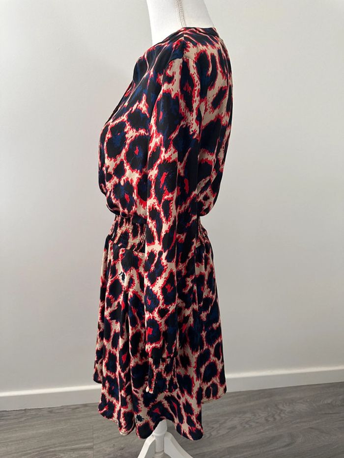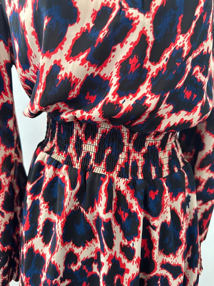 Robe léopard - Excellent état - Taille 38 équivalent M - Manches longues - Élastique à la taille - Marque Coolcat - Boutons au niveau du décolleté - 100% polyester - Multicolore, imprimés léopards