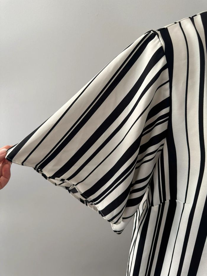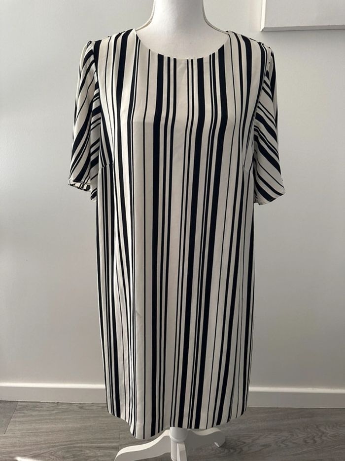 Robe à rayures - Excellent état - Marque H&M - Taille 44 équivalent XXL - Noire et blanche - Doublure intérieure - 100% polyester - Manches courtes
