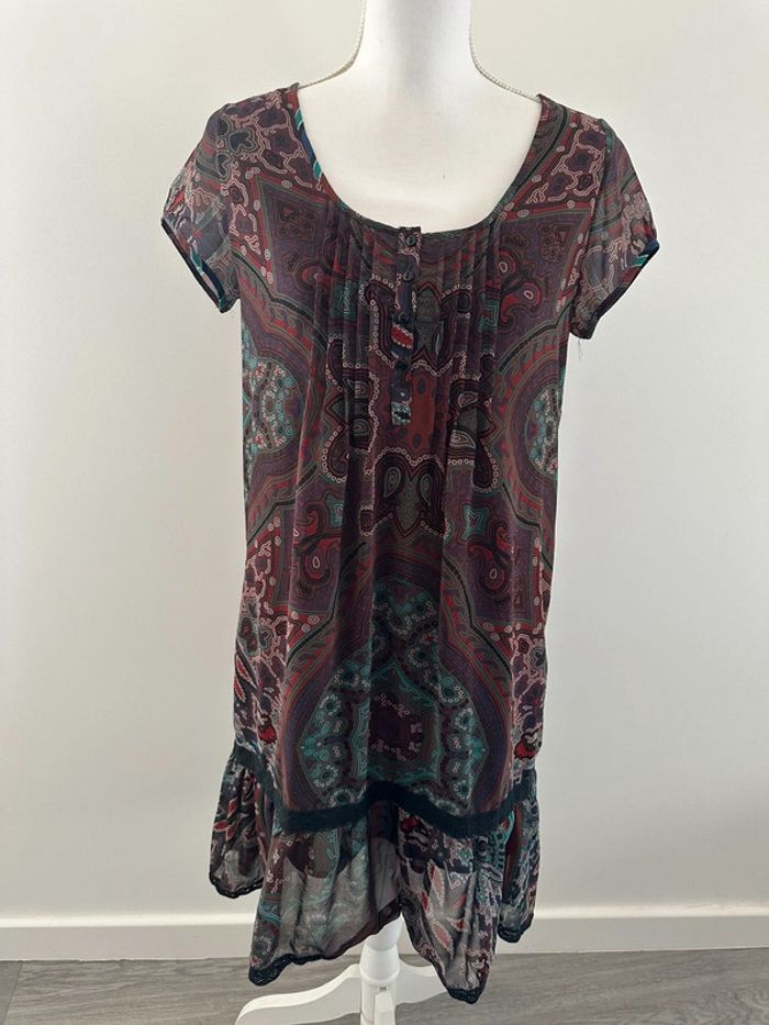 Robe bohème gipsy mandala - Excellent état - Taille 38 équivalent M - La Redoute - Doublure intérieure - Manches courtes - Multicolore - Tissus mandala bohème
