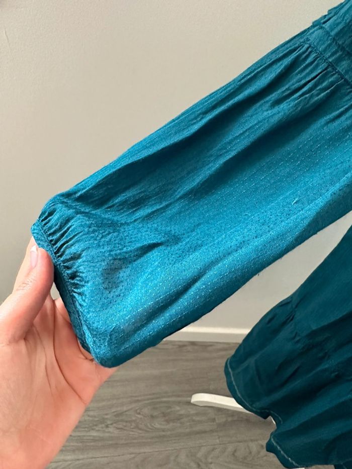 Robe longue - Excellent état - Bleu canard - Taille 38 équivalent M - Manches 3/4 - Détails brodés sur la poitrine et sur le bas de la robe