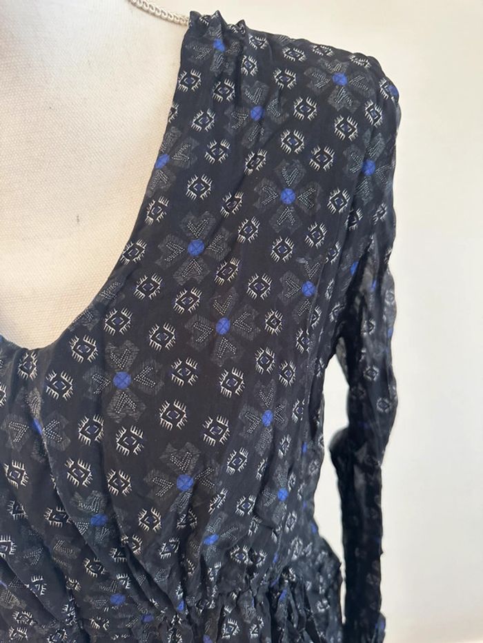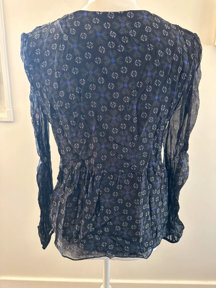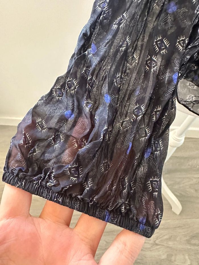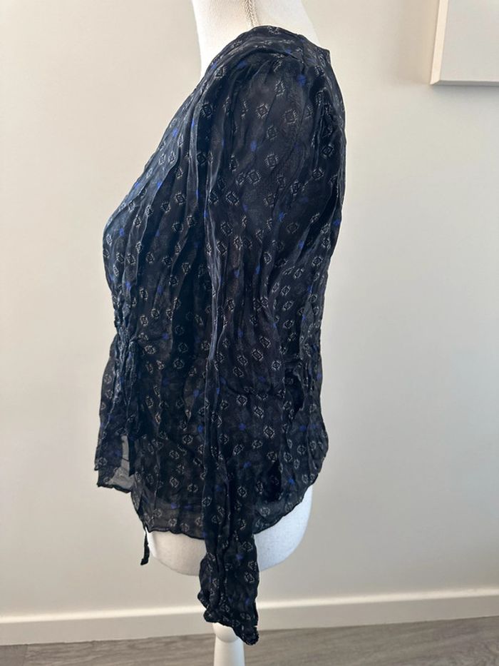 Blouse bariolée en soie noire blanche et bleue La fée Maraboutée T36 S - photo numéro 3