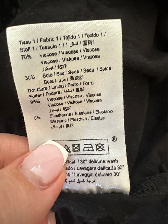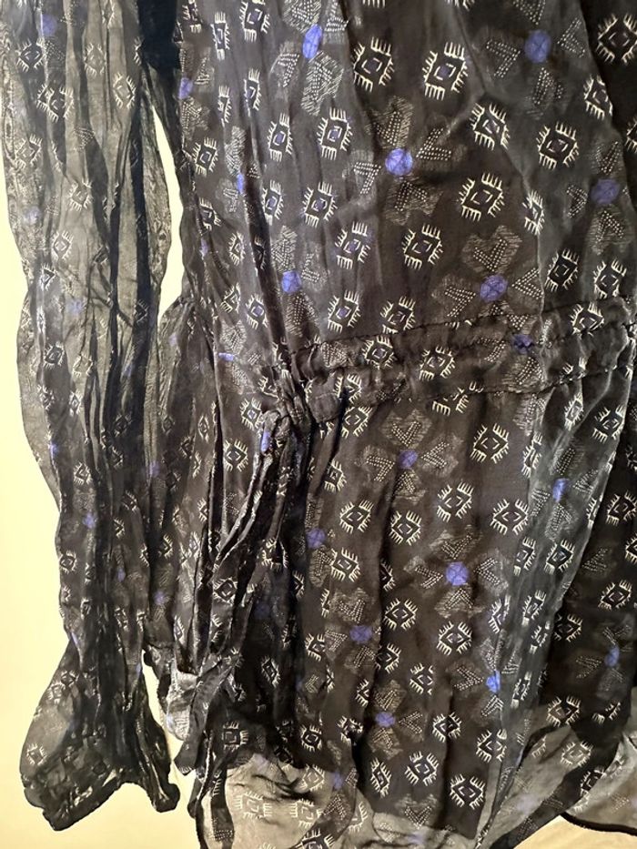Blouse bariolée en soie noire blanche et bleue La fée Maraboutée T36 S - photo numéro 10
